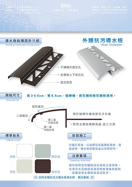 ADD外牆防汙導水板/滴水條 系列一 (磁磚牆面及配件)