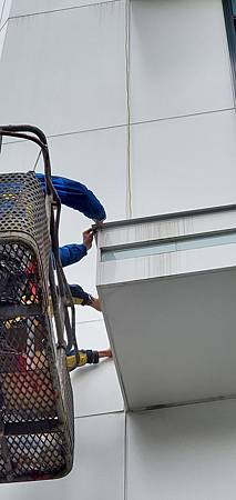 原本氣派豪華的外觀,已經多了一條一條烏黑的水滯